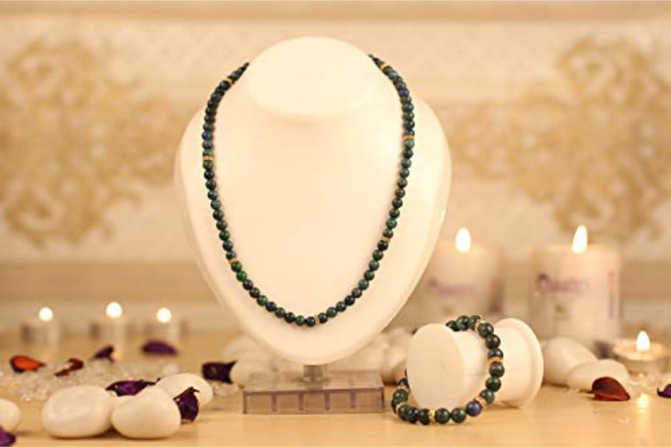 Aatm Gemstone Azurite Charm Bracelet & Necklace (Beads Size – 7-8 mm)
