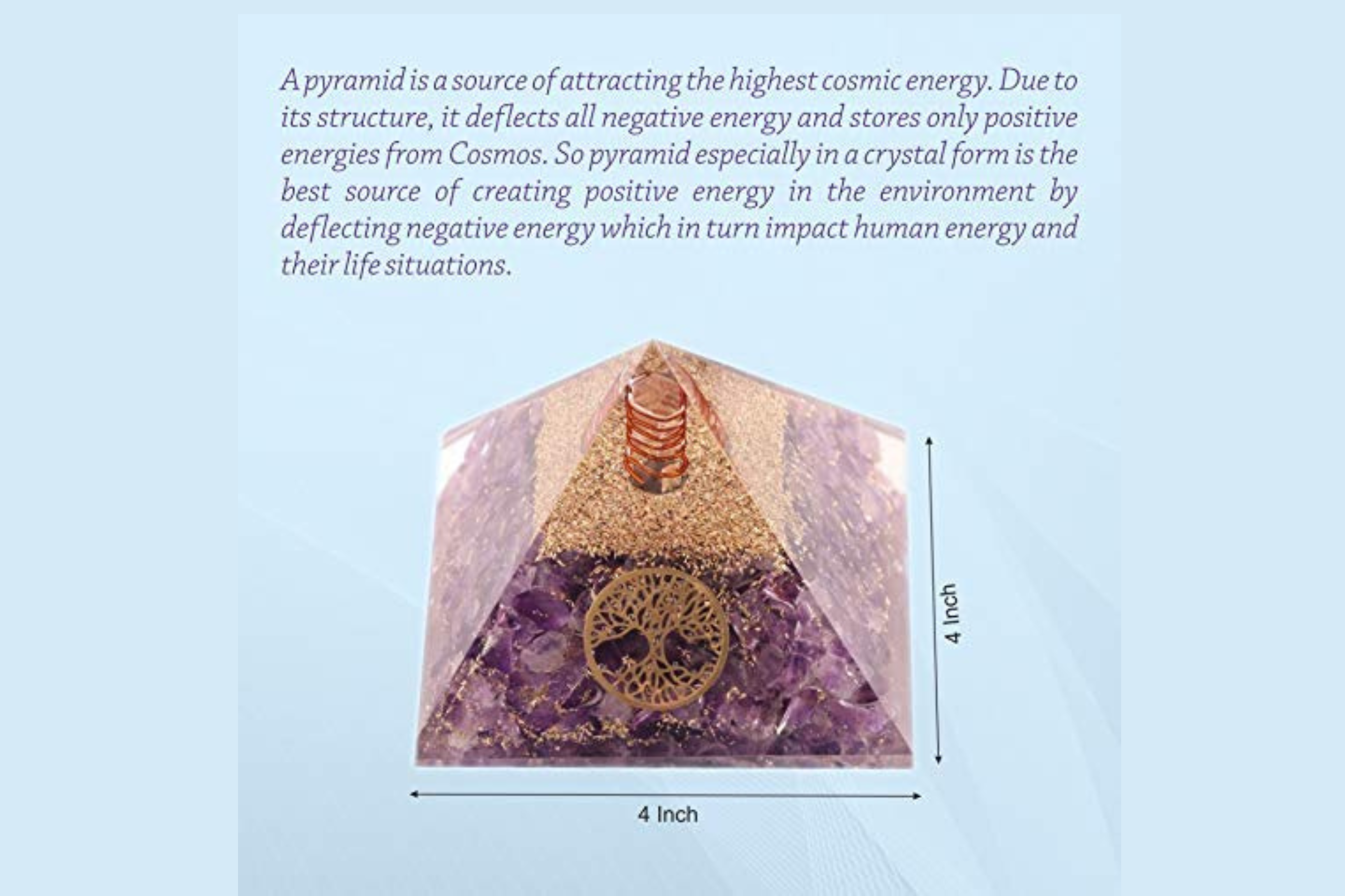 Aatm Natural Healing Amethyst Orgone Pyramid Life of Tree for Energy Protection